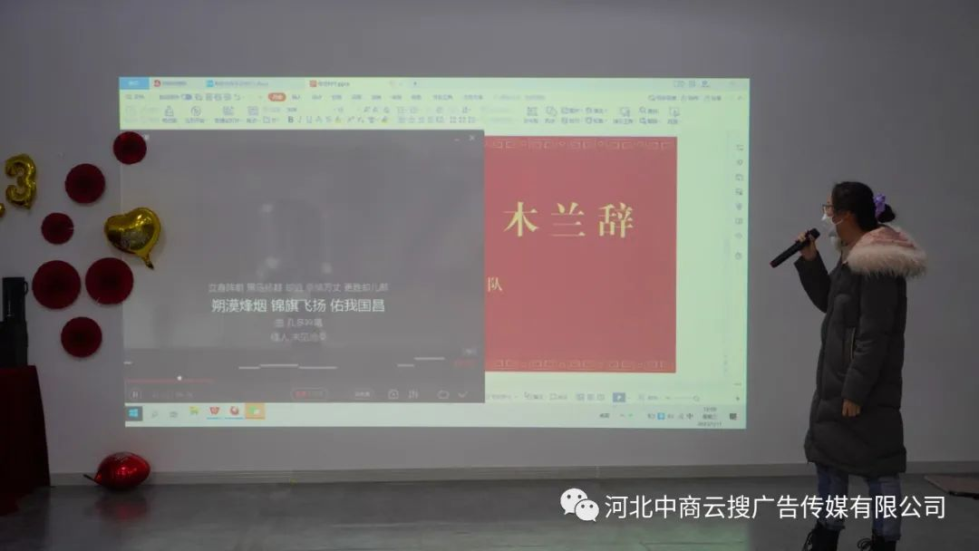 有歌有舞才叫歌舞升平,一首首歌曲傳遞的是同學們濃濃的祝福,電商運營張昭景同學為我們帶來一首《木蘭辭》!